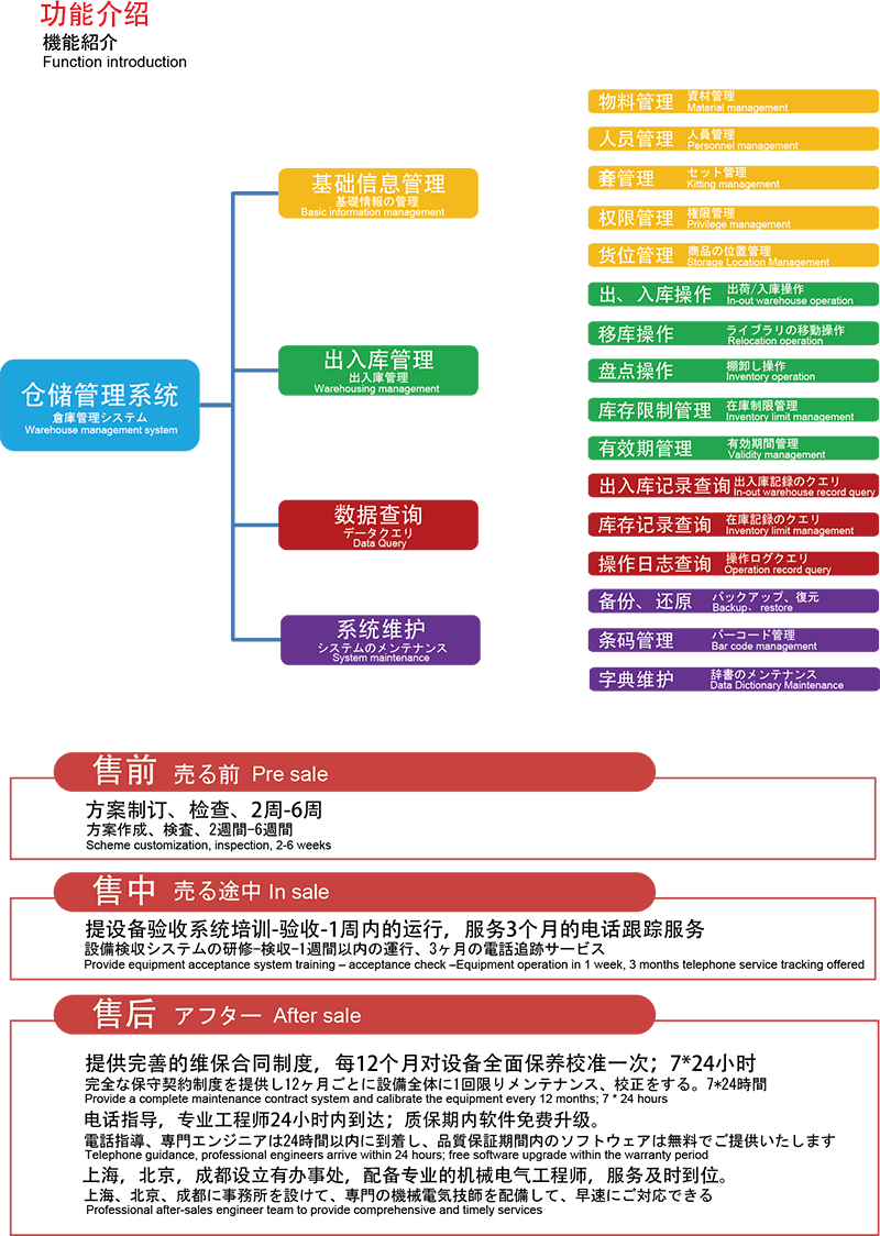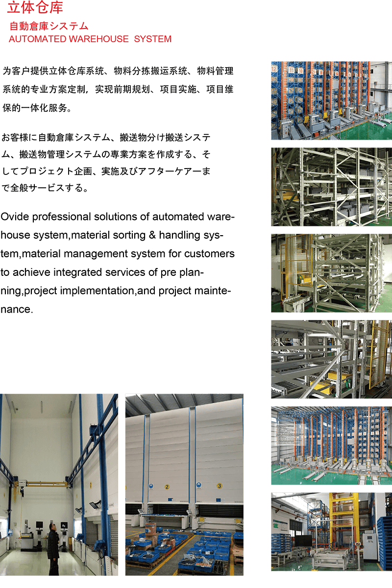 Společnost se specializuje na poskytování profesionálních řešení pro automatizované trojrozměrné skladové systémy, systémy třídění a manipulace s materiály a systémy pro správu materiálu. Tato řešení jsou plně integrována a zajišťují, aby byla pokryta každá fáze procesu, od návrhu a implementace po trvalou podporu. S velmi porozuměním potřebám klienta jsou služby společnosti Wuxi Huiqian přizpůsobitelné, což zajišťuje, že každý systém je přizpůsoben optimálnímu výkonu.