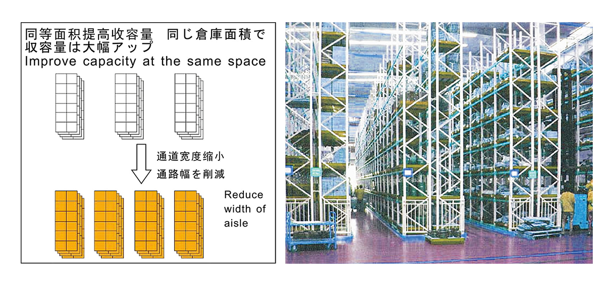 Různé průvodce lze nainstalovat podle odpovídajících vysokozdvižných vozíků, které mohou snížit šířku projíždějící uličky a využít prostor.