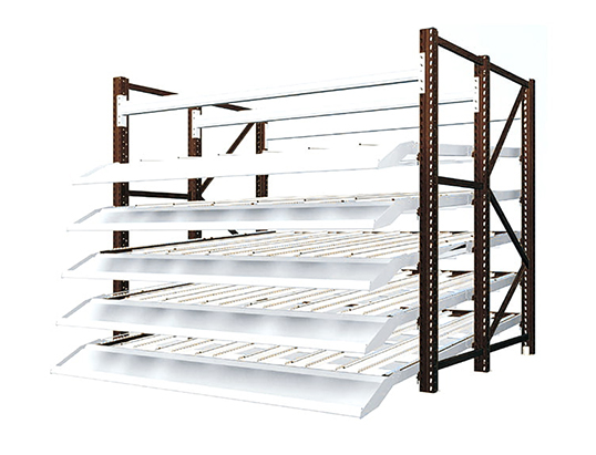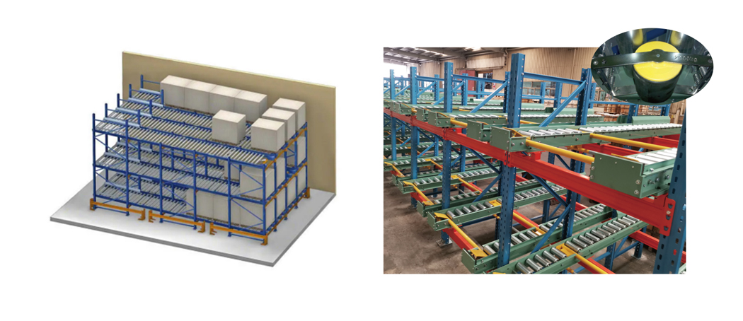 Funkce FLFO Gravity Rack je založen na sklonu (4%) skluzavky a mrtvé hmotnosti zboží. Přímé válce gravitace se používají jako podpora sklouznutí dolů. Propustnost LTS je vysoká. Ukládání a načítání lze provádět současně, takže se zvyšuje rychlost toku zboží. Účely LT je vhodné pro skladování a načítání palet nebo velkého objemu, s méně druhy zboží. Každá posuvná stopa se používá pro ukládání a získávání co nejvíce o jednom druhu zboží. LT má široké použití v takových průmyslových odvětvích, jako jsou mechanické, chemické, elektronické, nápojové a potraviny atd.