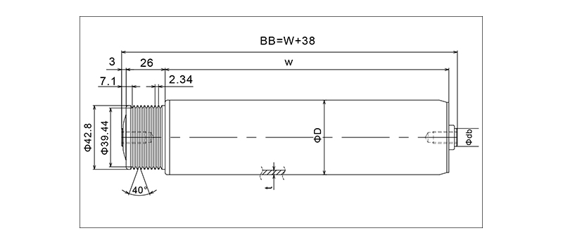 | KR-384010S | 38.1 × 2,3 | 100 ~ 800 | STKM | 6001zz · 6201Z | 12.0 | 18 × 12,2 × 26 | #40 × 10ts | 46 | 41.1 | 12 | 14 | W-1 | W 28 |