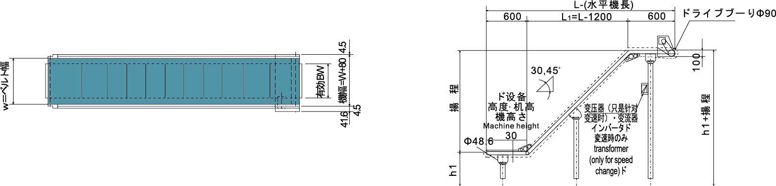 | Šířka dopravníku | 390 | 490 | 590 | 690 | ||||