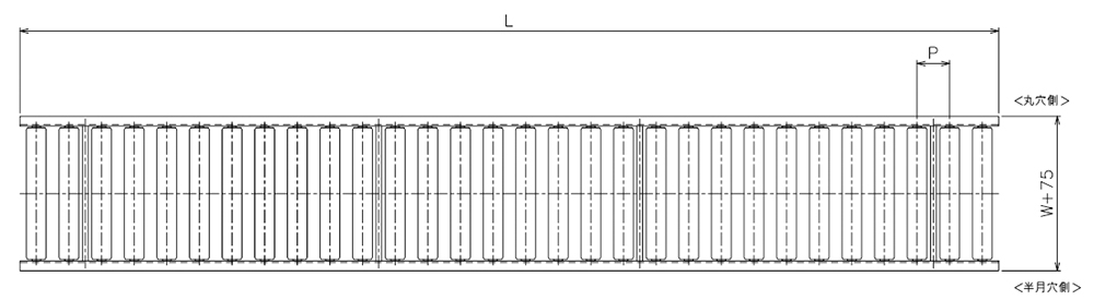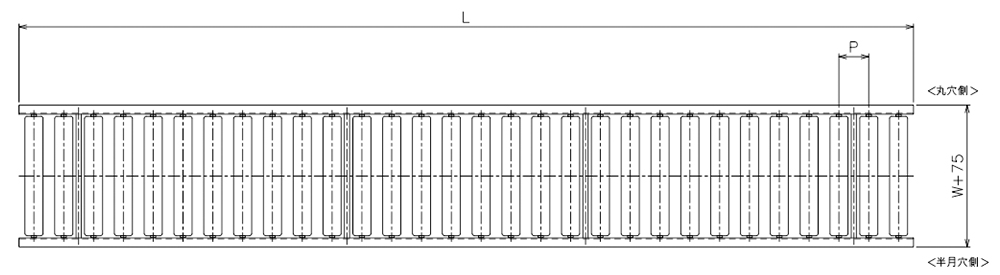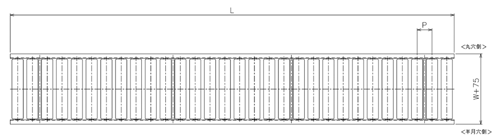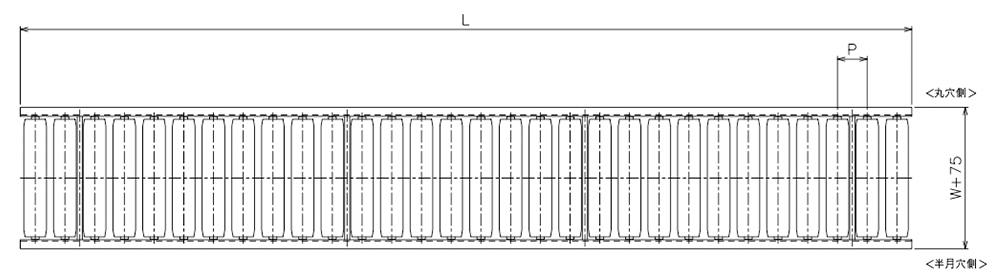 | Šířka dopravníku W 75 (mm) | 175 | 275 | 375 | 475 | 575 | 675 | 775 | 875 | 975 | 1075 | |