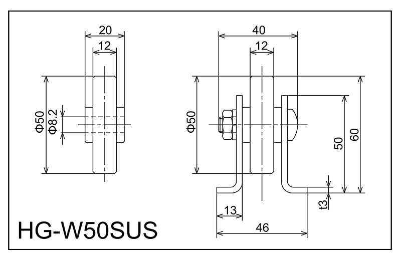 | HG-W50SUS | 50x12x8.2x20 | M8X35L | 50x46x13x40x3.0 | 60 | 1800 · 2400 · 3000 | 75 · 100 · 150 · 200 | 80 | C |