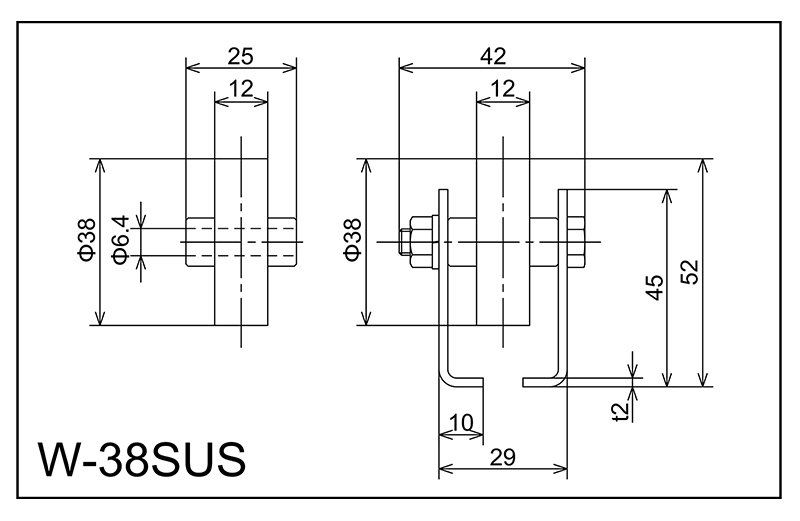 | W-38sus | 38x12x6.4x25 | M6X38L | 45x29x10x42x2.0 | 52 | 1800 · 2400 · 3000 | 50 · 75 · 100 · 150 | 20 | A |