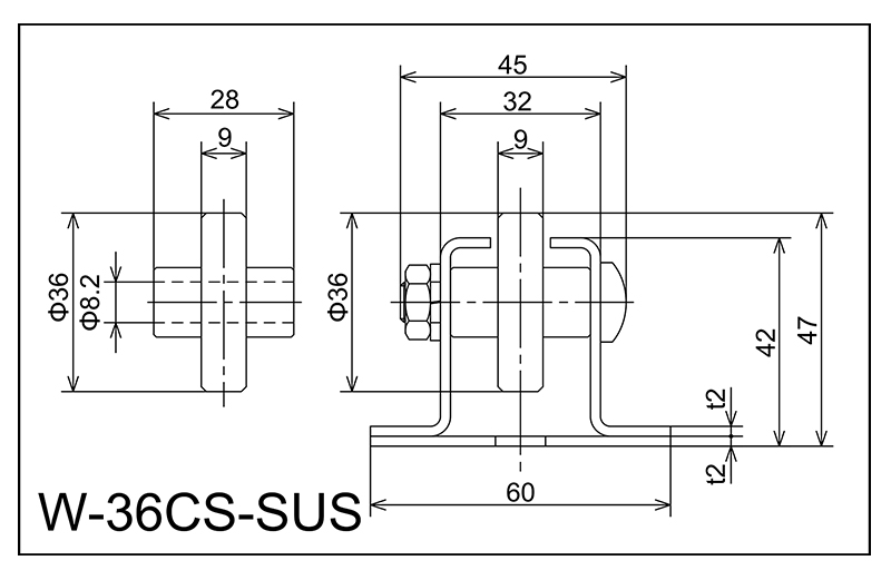 | W-36CS-SUS | 36x9x8.2x28 | M8X40L | 42x60x32x45x2.0 | 47 | 1800 · 2400 · 3000 | 50,75 · 100 · 150 | 40 | J |