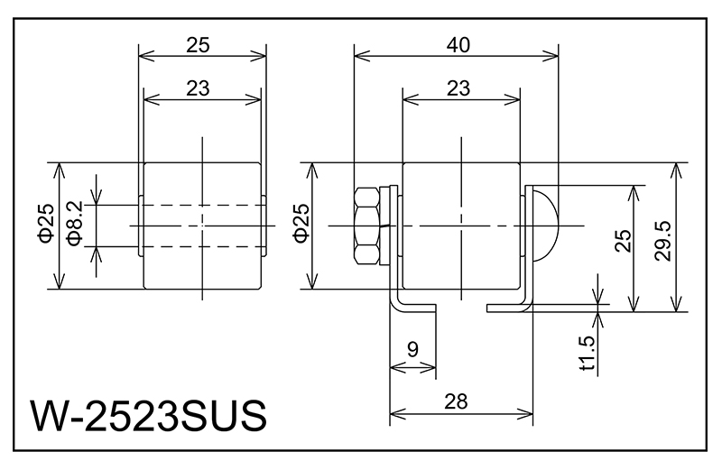 | W-2523SUS | 25x23x8.2x25 | M8X35L | 25x28x9x40x1.5 | 29.5 | 1000 · 1500 · 2000 | 30 · 35 | 50 | A |