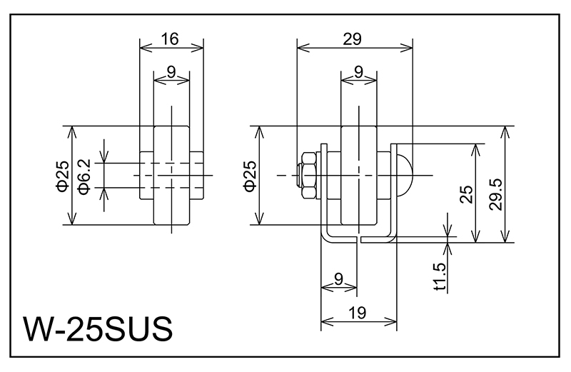| W-25sus | 25x9x6.2x16 | M6X25L | 25x19x9x29x1.5 | 29.5 | 1000 · 1500 · 2000 | 30 · 35 | 30 | A |