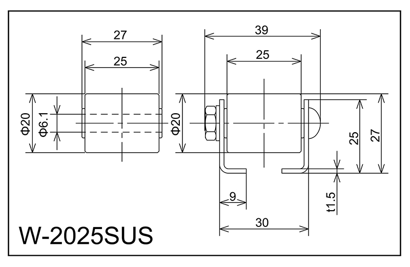 | W-2025sus | 20x25x6.1x27 | M6X35L | 25x30x9x39x1.5 | 27 | 1000 · 1500 · 2000 | 25 · 30 · 35 | 40 | A |