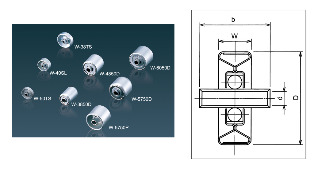| Typ | D*w*d*b | Hřídel | Velikost rámu H*W1*W2*W3*t | Výška H | Délka L | Stritch kol P | Načítání jednoho kola (KG) | Typ rámu |