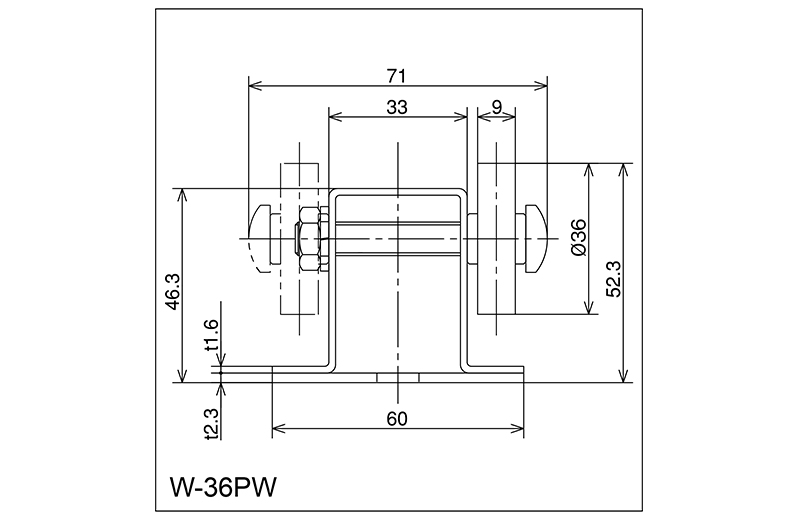 | W-36PW | 36 × 9 × 8 × 14 | M8 × 55L | 46,3 × 60 × 33 × 71 × 1.6 2.3 | 52.3 | 1800 · 2400 · 3000 | 50 · 75 · 100 · 150 | 10 | POM |