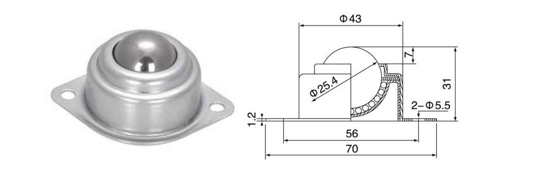 | SP-25FL | BS/CS | 200 | 220 | 25.4 | 38 | 45 | 7.2 | 13.8 | 31 | 25 | M12 | 0.280 |